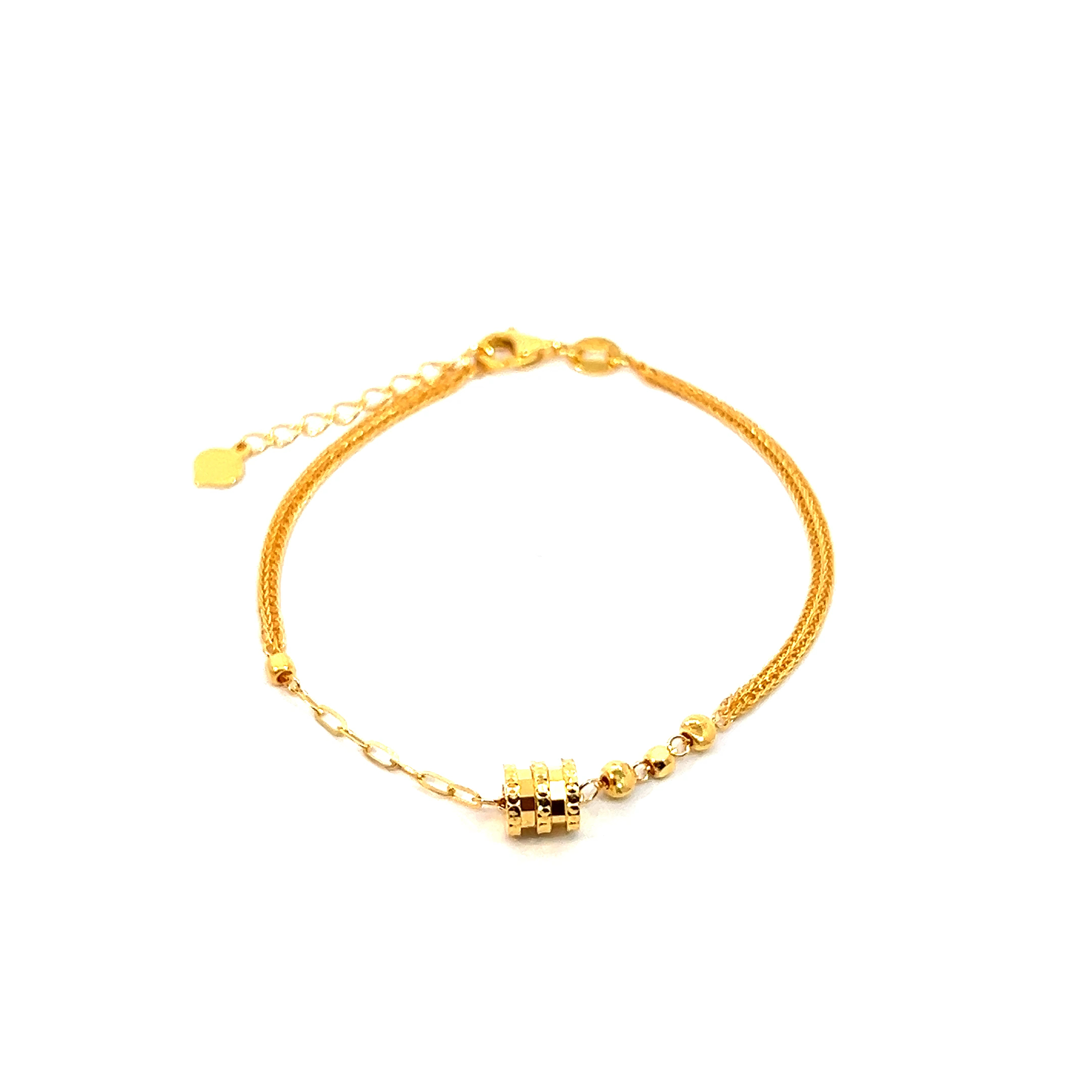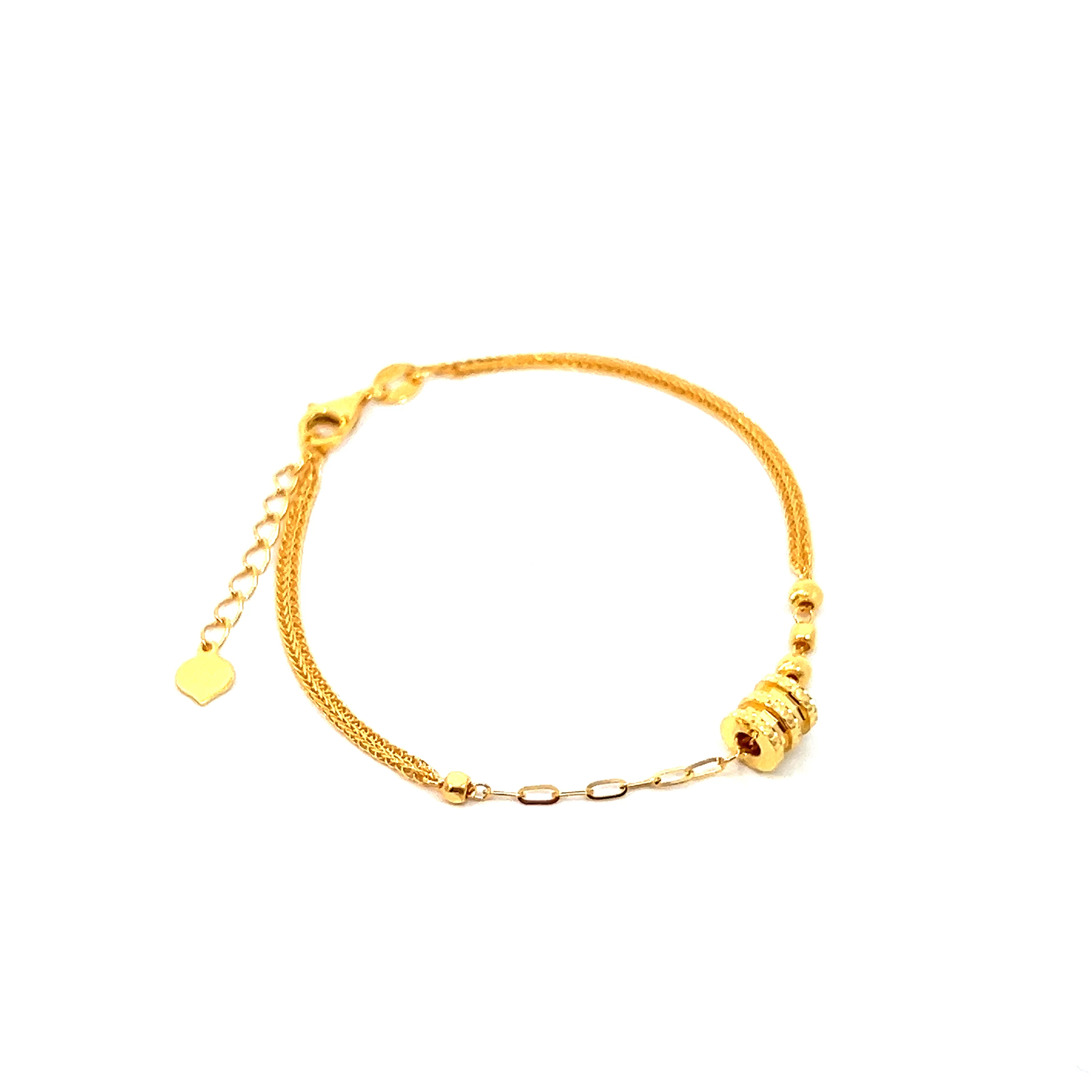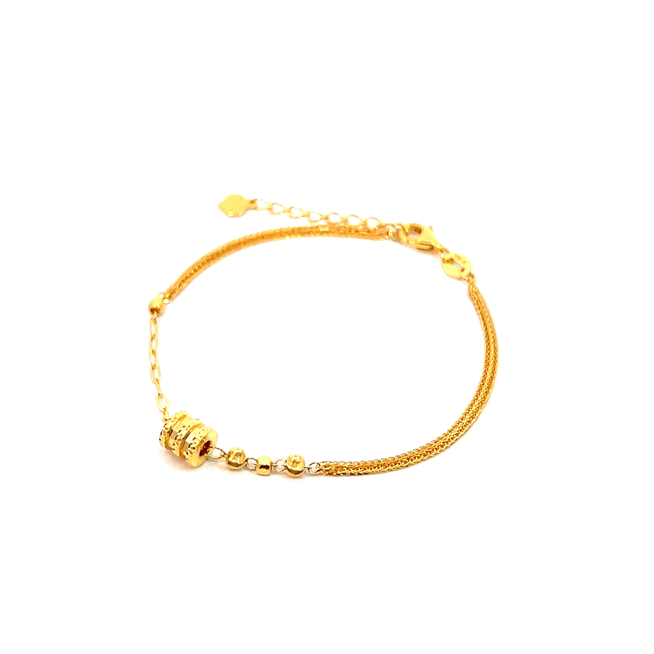 Radiate elegance with this exquisite gold bracelet. The fine craftsmanship is evident in its detailed charms and sleek chain, making it an ideal piece for both daily wear and special events. This timeless accessory will surely complement any outfit.