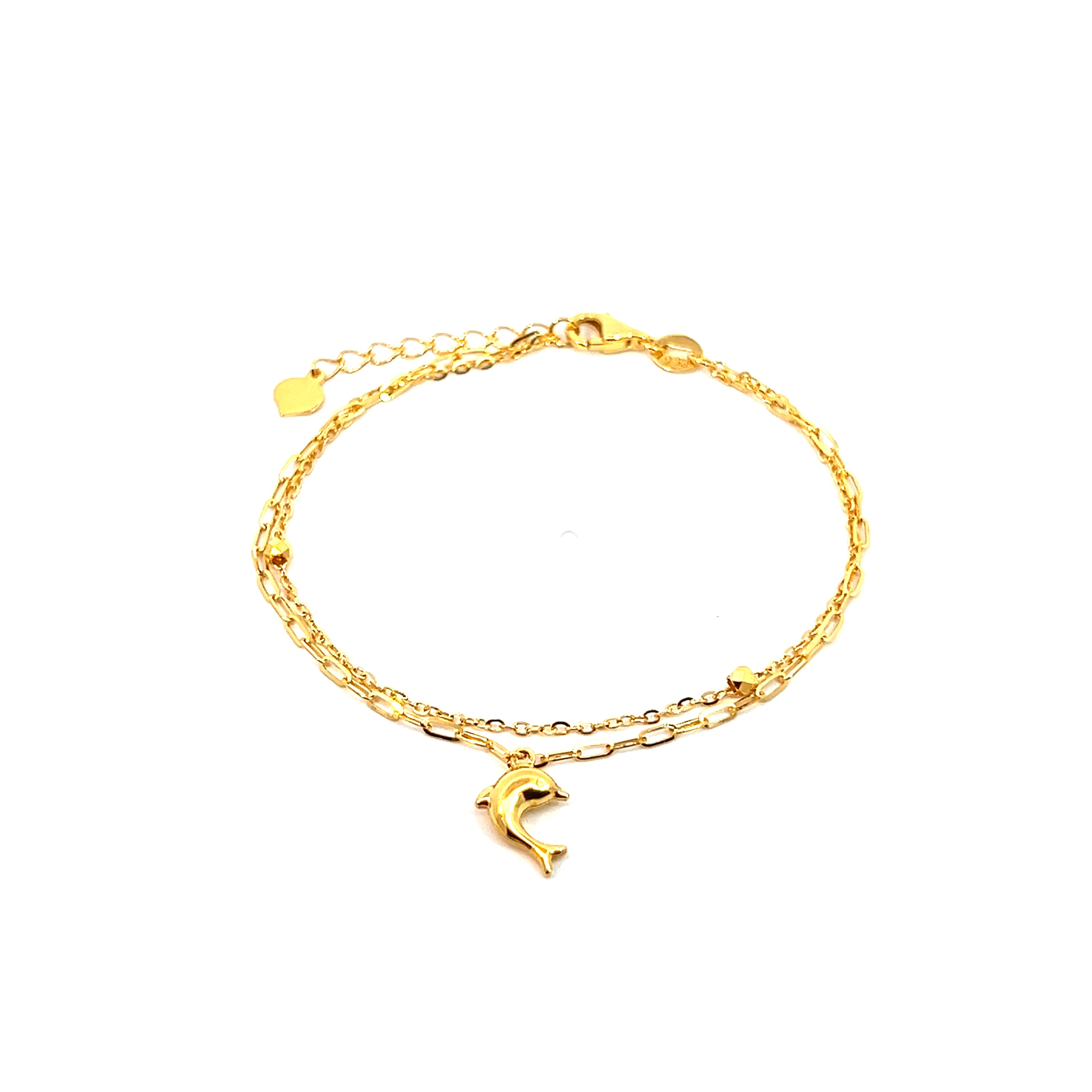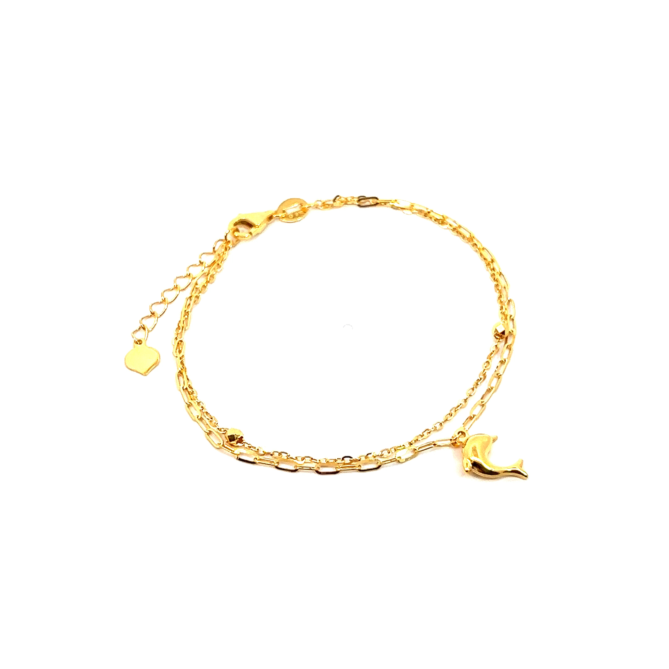 Embrace the allure of the ocean with this exquisite gold bracelet, adorned with an intricately detailed dolphin charm. Its minimalist yet stylish design makes it a versatile accessory that complements any outfit effortlessly.